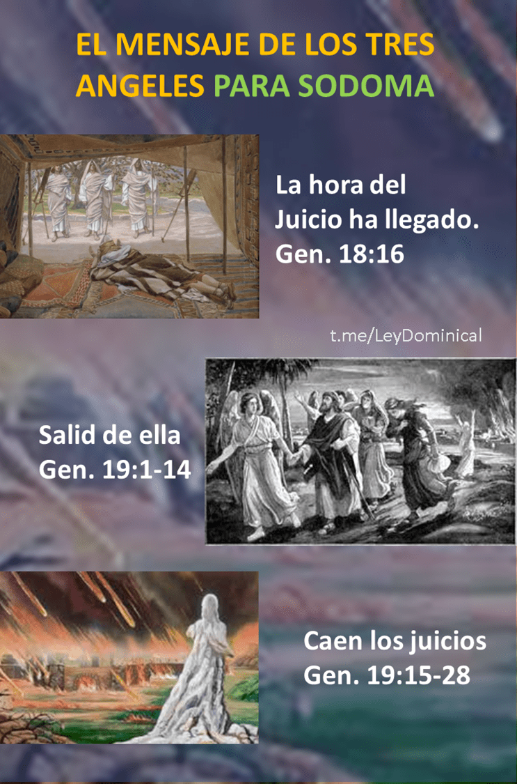 Para entonces Lot debe haber reconocido el carácter sobrenatural de sus visitantes. Era tiempo de que lo informaran del propósito de su misión, y procedieron a enterarlo, mediante el lenguaje más claro posible, de la inminente y completa destrucción de la ciudad. Aunque los hijos casados de Lot aparentemente se habían amoldado a la vida de la gente de Sodoma, los ángeles estuvieron dispuestos a salvarlos por causa de Lot si estaban dispuestos a dejar la ciudad. Aunque habían participado de los pecados de Sodoma, tan sólo su propia elección haría inevitable su destrucción junto con ella.